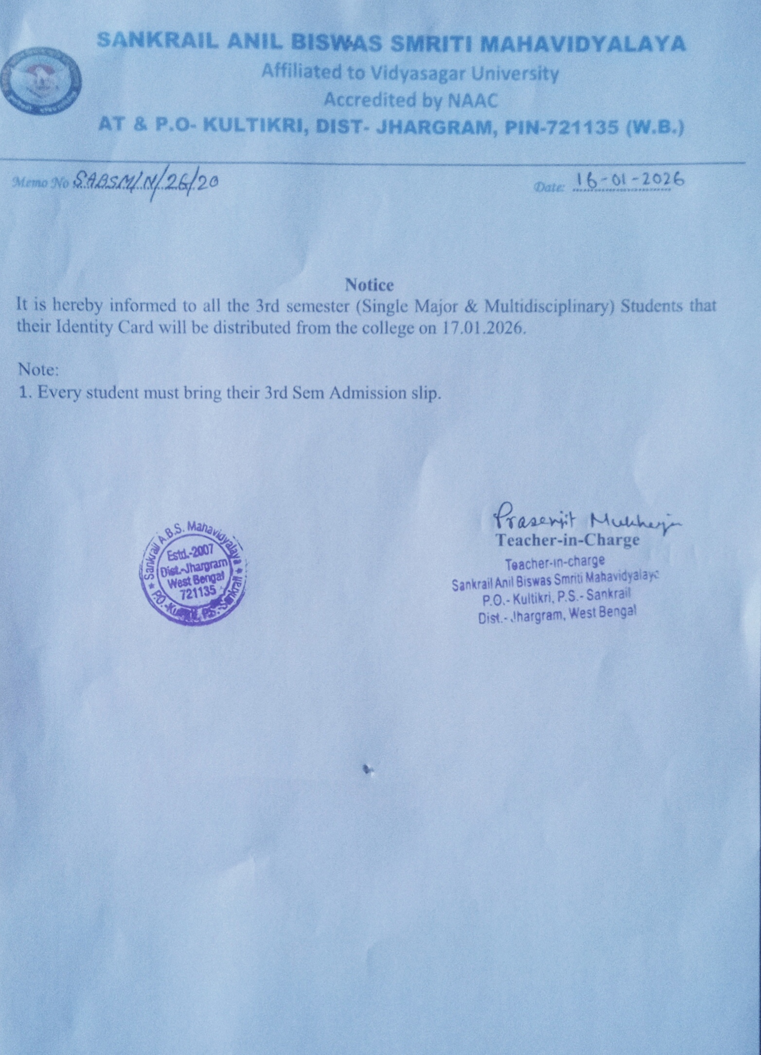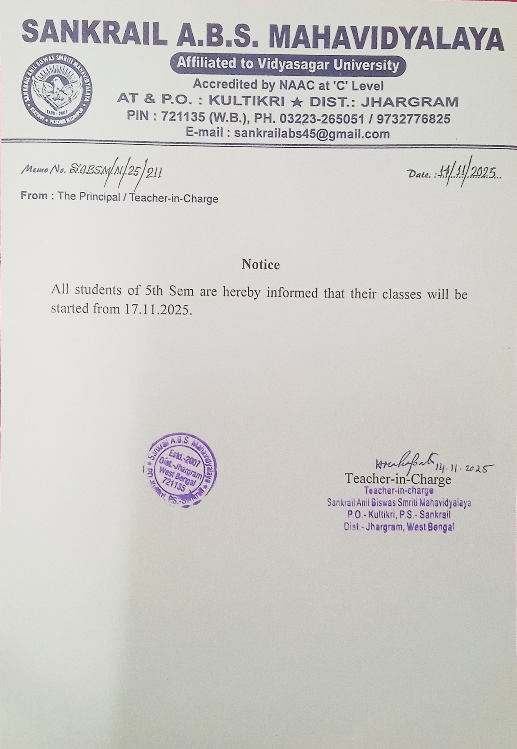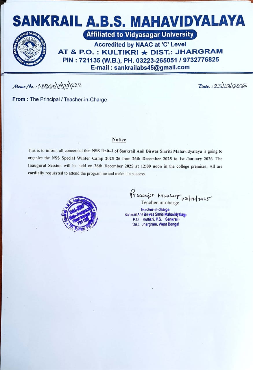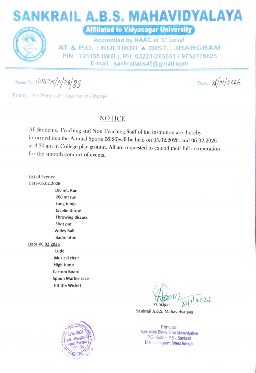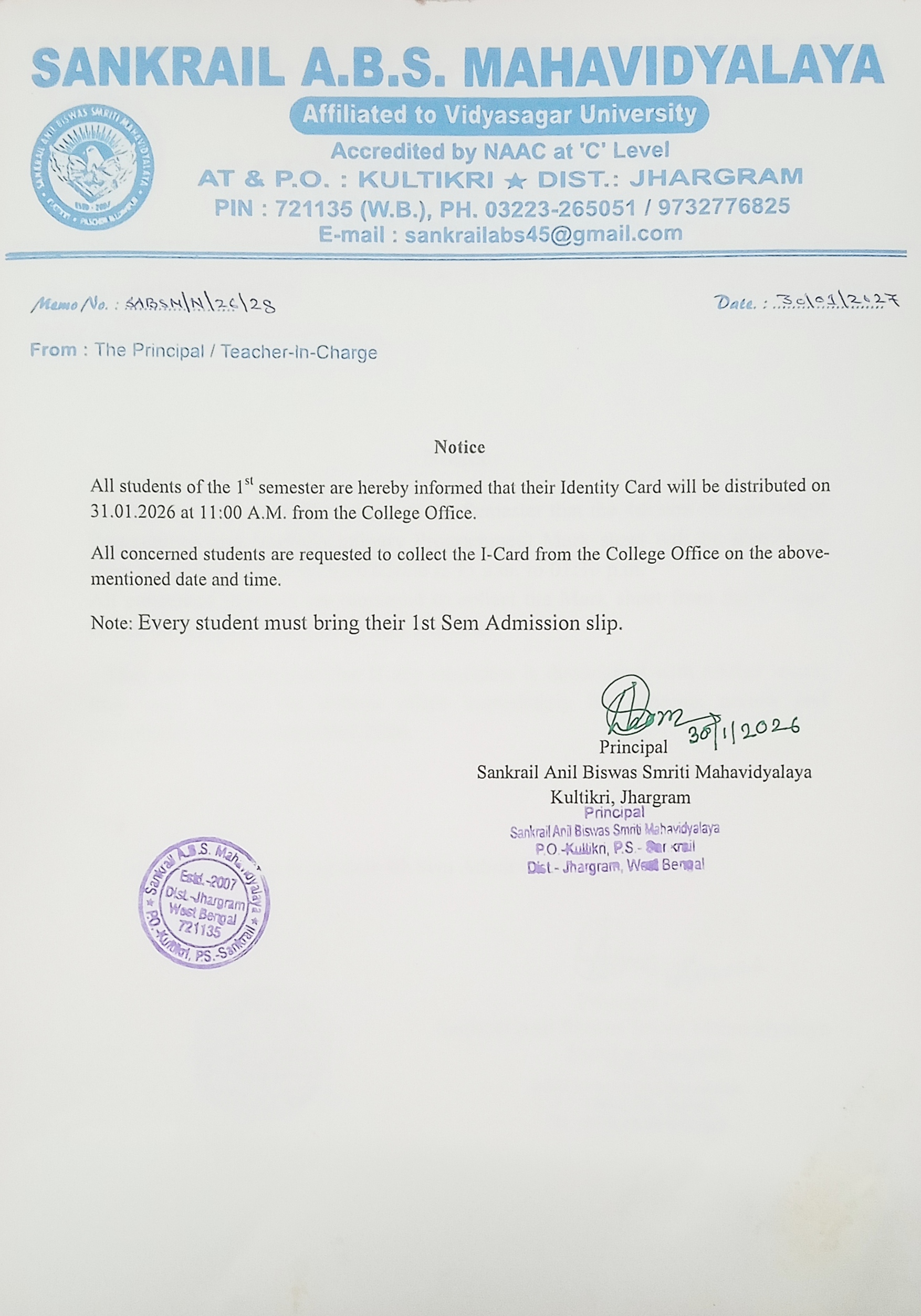 Sankrail Anil Biswas Smriti Mahavidyalaya, situated in the verdant village of Kultikri, Jhargram, West Bengal, is a NAAC-accredited institution affiliated with Vidyasagar University. Established in 2007, the college was founded with a mission to provide accessible, quality higher education to first-generation learners, particularly from Scheduled Castes, Scheduled Tribes, and Other Backward Classes in the Jungle Mahal region. Named after the esteemed social worker Anil Biswas, the institution embodies a commitment to empowering marginalized communities through academic excellence and holistic development.