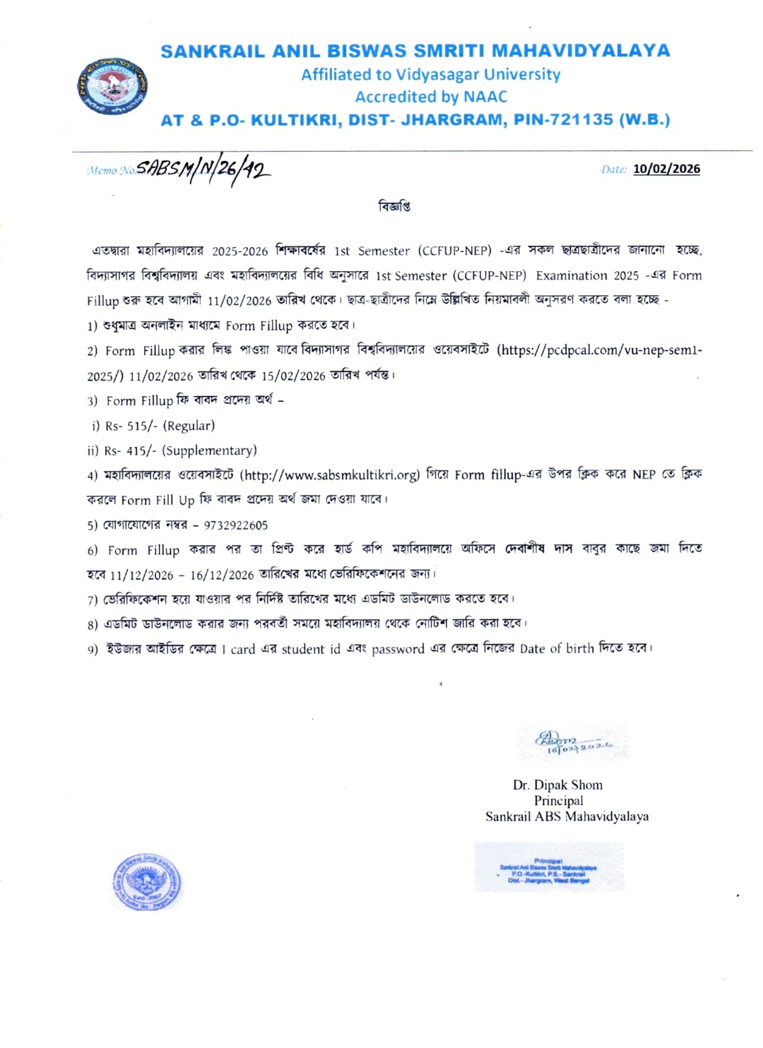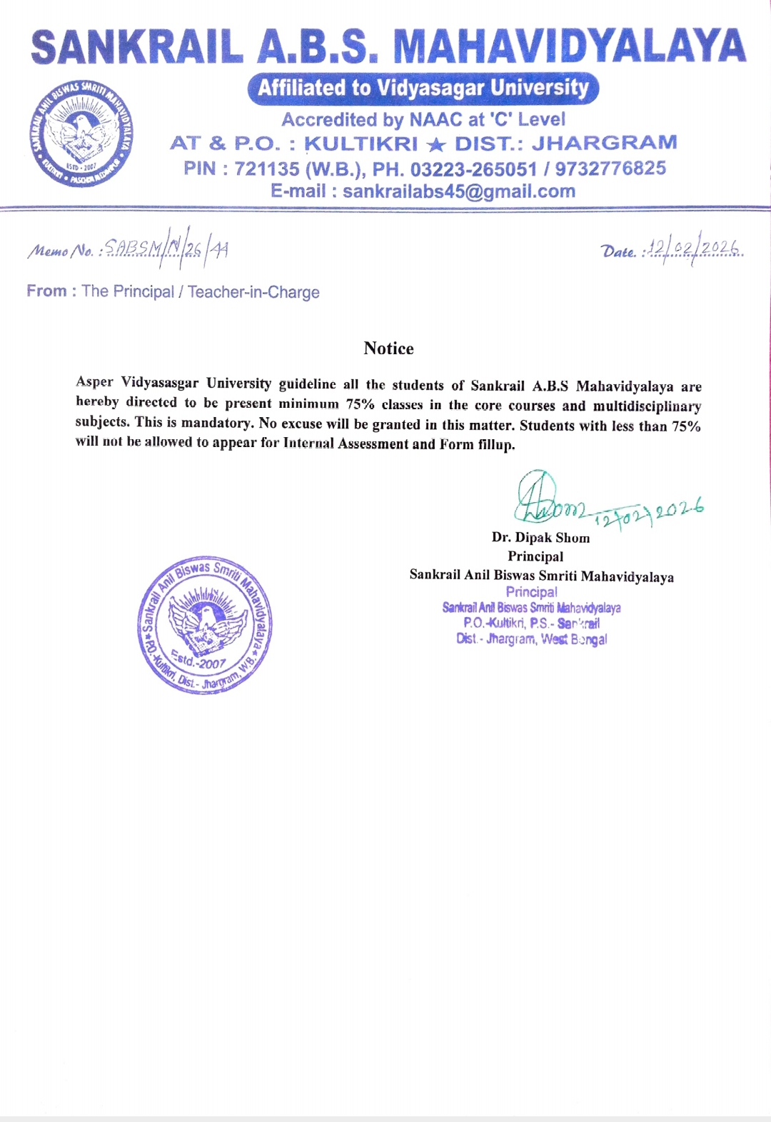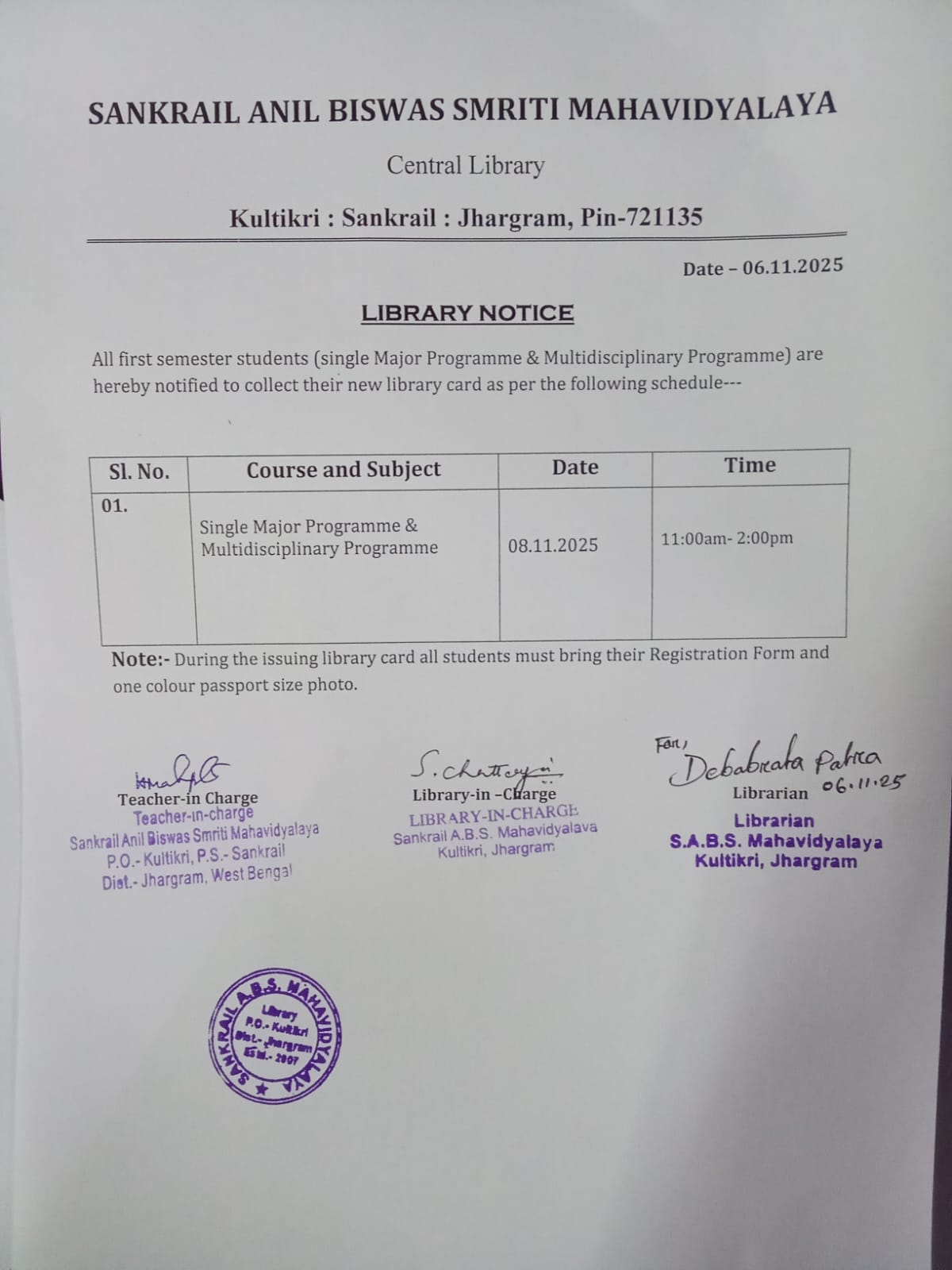 Nestled amidst the natural beauty of Jhargram, the college operates from a sprawling, eco-friendly campus that blends modern infrastructure with a serene learning environment. It offers a diverse range of undergraduate programs in Arts and Science, structured under the Choice-Based Credit System (CBCS) and the National Education Policy (NEP-2020) frameworks. Students can pursue 3-year and 4-year Honours/Honours with Research degrees, as well as multidisciplinary programs, in subjects such as Bengali, English, Sanskrit, History, Political Science, Santali, Education, Physics, Chemistry, Mathematics, Geography, and more.